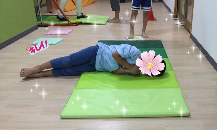 真っ直ぐに体を維持しながら体幹を使い転がる運動です。