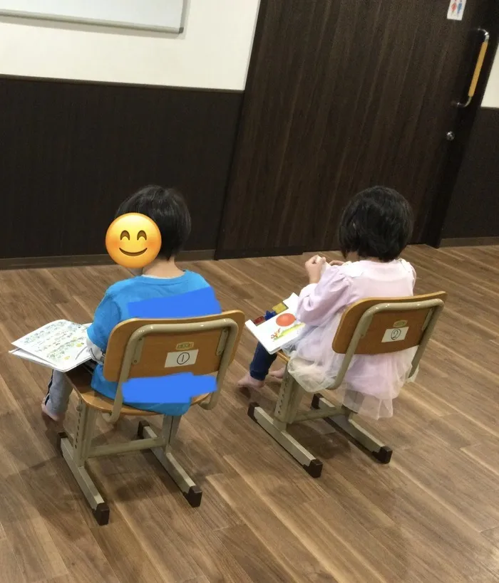始まりの会を行う前に椅子に座り、時間になるまで絵本読む時間があります。