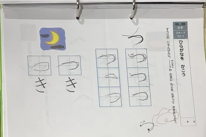 そこで、書き順や書く向きを確認して、ひらがなにまだ慣れていないお友だちも安心できるように始めます✨