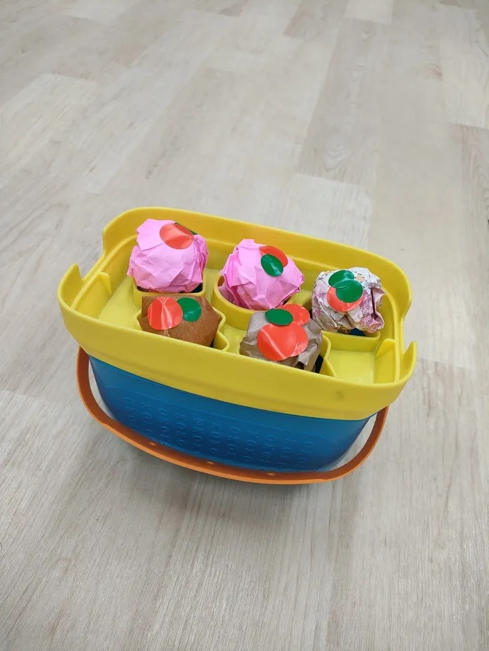 今日は、3歳の子どもさんと折り紙でたこ焼きを