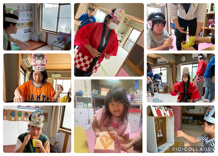午前中は、大好きなキャラクターのお面を選んで、ゲームスタートです。わなげ、コイン落とし、たこ焼きゲームなどで遊びました。