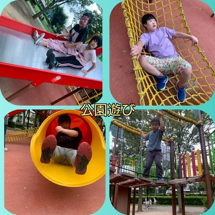 今回は近くにある八戸ノ里公園にいき、すべり台にブランコ、ジャングルジム等たくさんの遊具で遊びました(^^♪