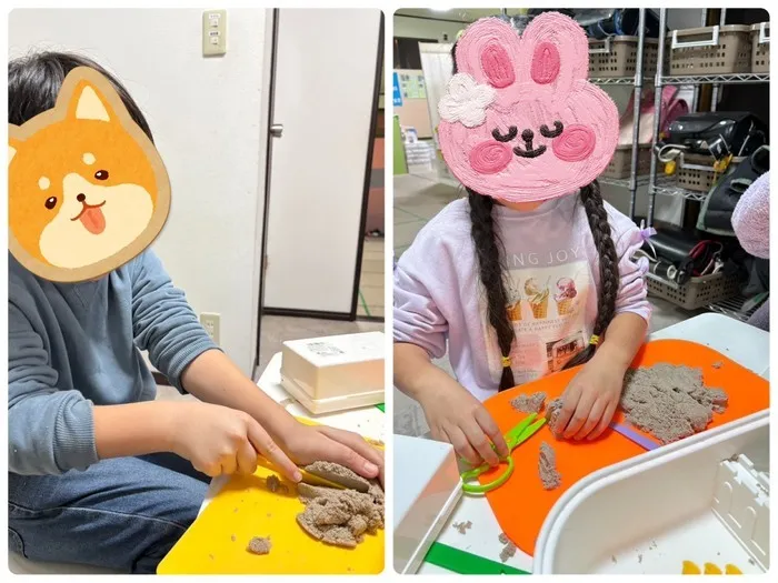 また、友だちと型やヘラなどの道具を貸し借りする時に「貸して」「ちょっと待ってね」「いいよ」などやりとりをすることでコミュニケーション能力を伸ばすことができます。