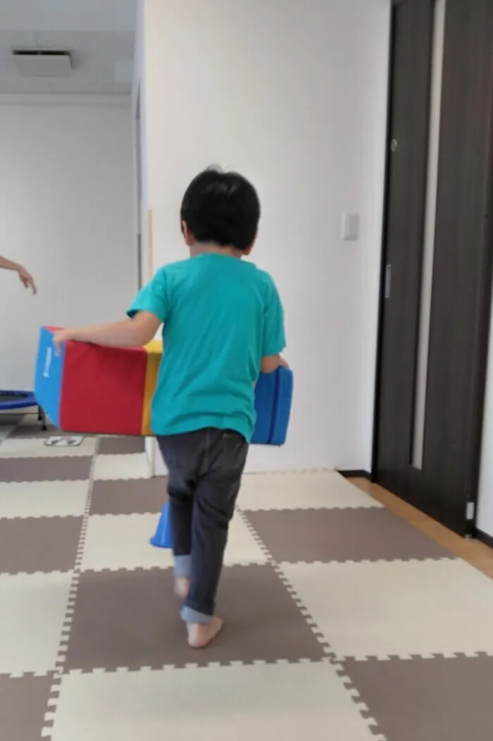 ウレタン跳び箱を置く際には、ゆっくり静かに置くことを意識することで最後まで全身の力を使うこと、物を置く際には静かに置くことの意識にもつながっていきます。