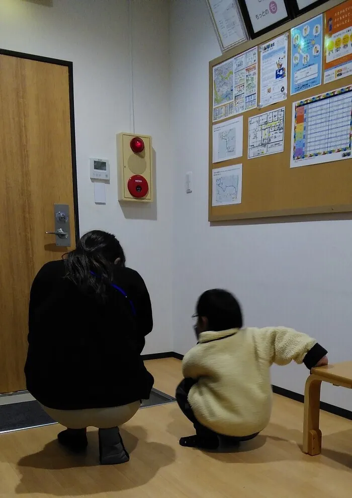 このことを踏まえ ハンカチやタオル、服の袖などで口と鼻をおおいしゃがんで避難する練習をしました。