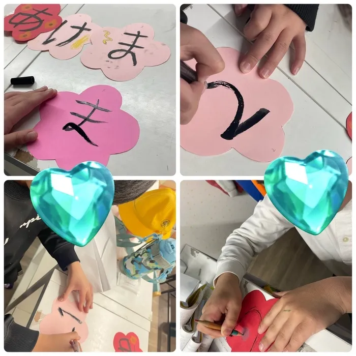 今日のプログラムは共同制作Part⑤で『あけましておめでとうございます』を一文字ずつ筆ペンで書いてもらいました🙌