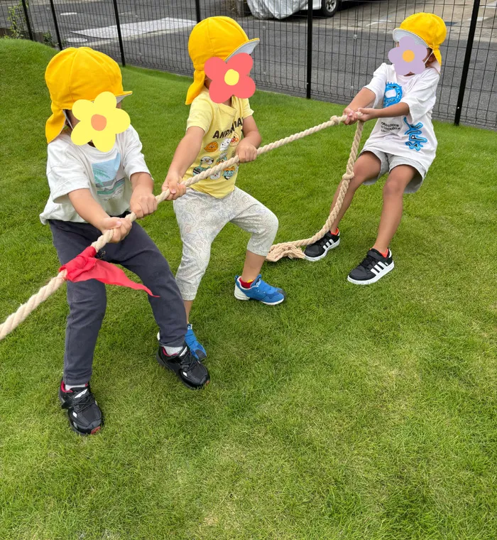 運動会のように子どもたちが競争をしたり、おうちの方には障害物競争に参加してもらったり、最後はみんなで綱引きをしたり😌💨