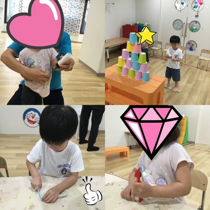 的に当たって紙コップが倒れると、みんなニコニコ笑顔に😊💓