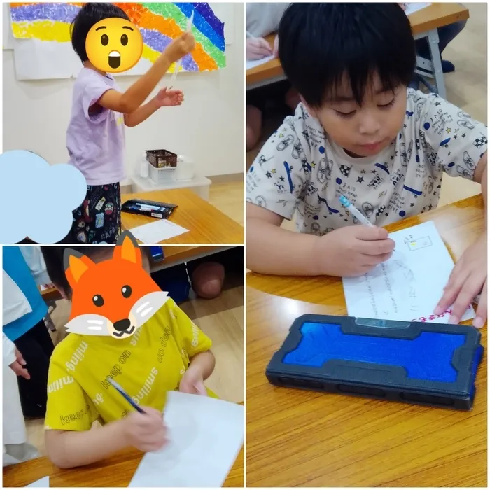文字で書くのが難しい子は仕草や表情で発表し、満足する姿が見られました!!