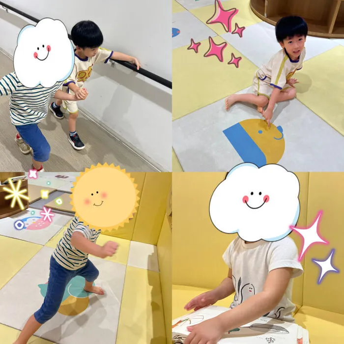 歪んだ鏡に顔を映して大笑いしたり、絵本を座って読んだり・・・✨