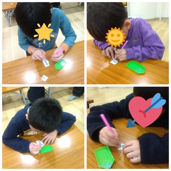「どれにしようかな~?」とワクワクしながら、魚🐡・タツノオトシゴ🦑・カメ🐢の順に難易度を上げて取り組みました💕