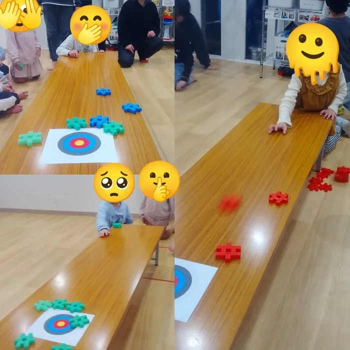 今日の活動は『ブロックでカーリング』