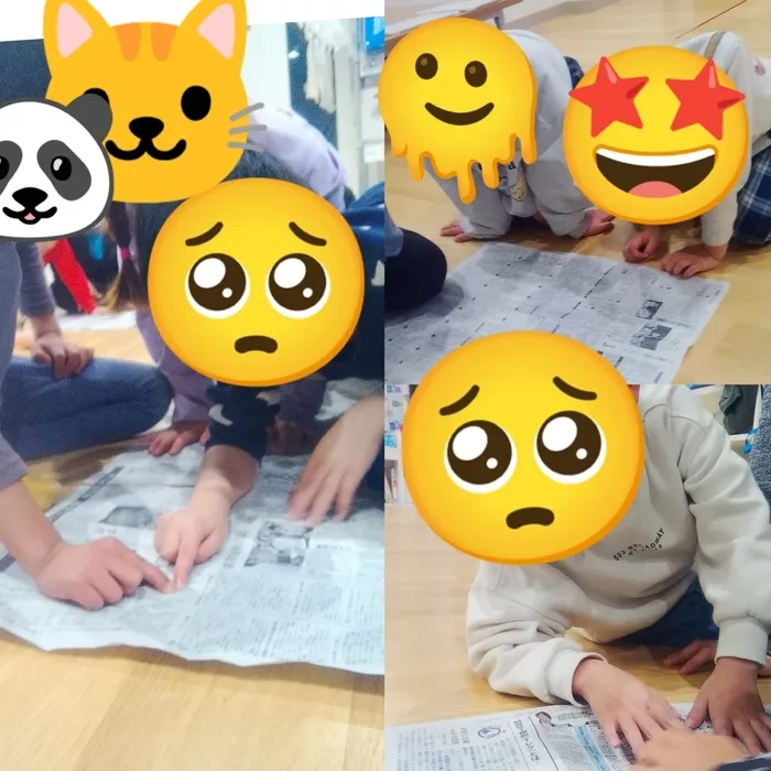 今日の活動は 新聞紙ひらがな探しゲームです😊