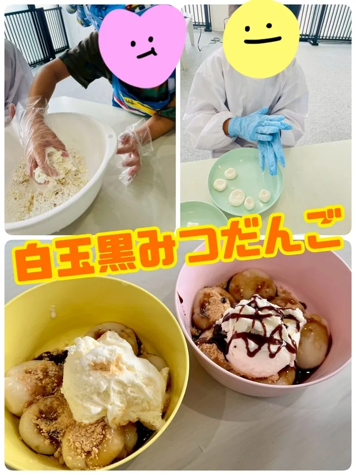 お湯に入れて、浮かんでくるまでみんなで待っていると、もちもちの白玉たんごの出来上がりです!