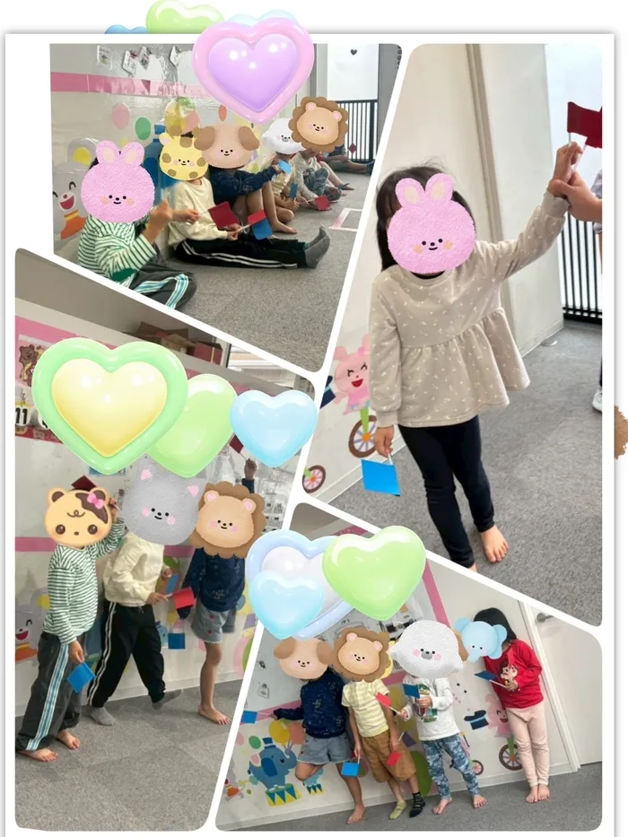 スタッフの掛け声に合わせて、迷いながら楽しく旗を上げ下げしていました☺️