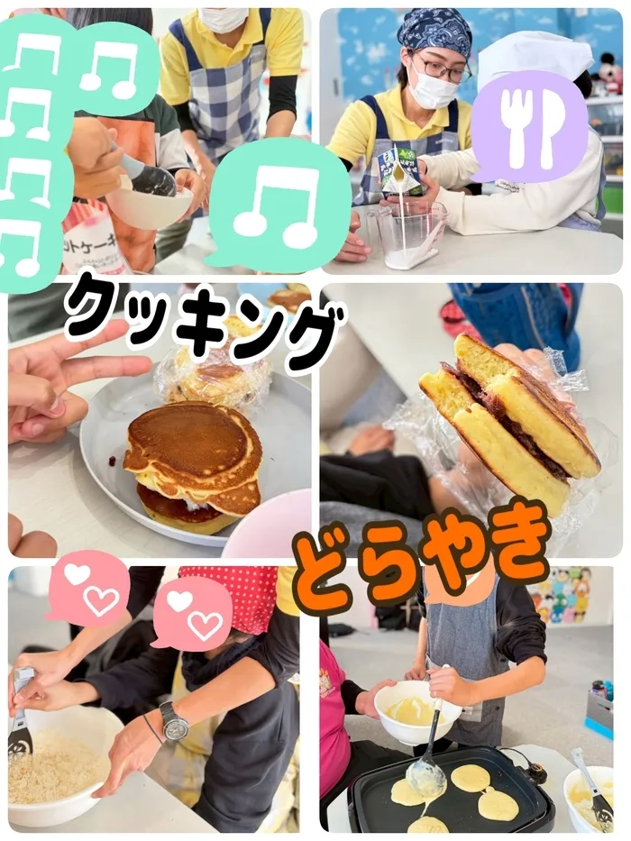 焼き上がった生地にたくさん、つぶあんをはさんで、どら焼きが完成しました‼️