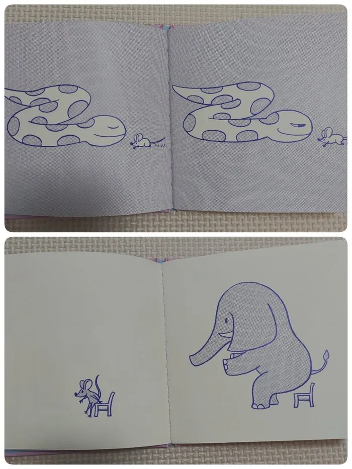 写真のように2つの絵が並んでいて、ピンチな状況はどっちか考えてもらう絵本です。この後どうなってしまうのか、子ども達に想像してもらいます。