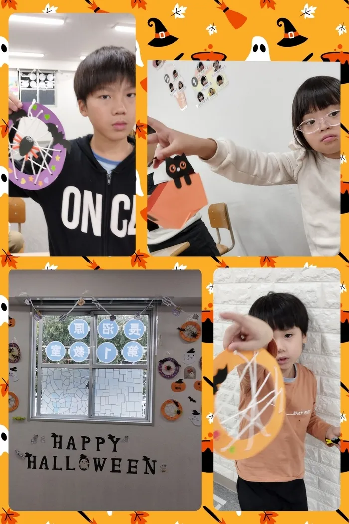 できた作品を教室に飾り、少しハロウィンっぽさが出てきました🎃