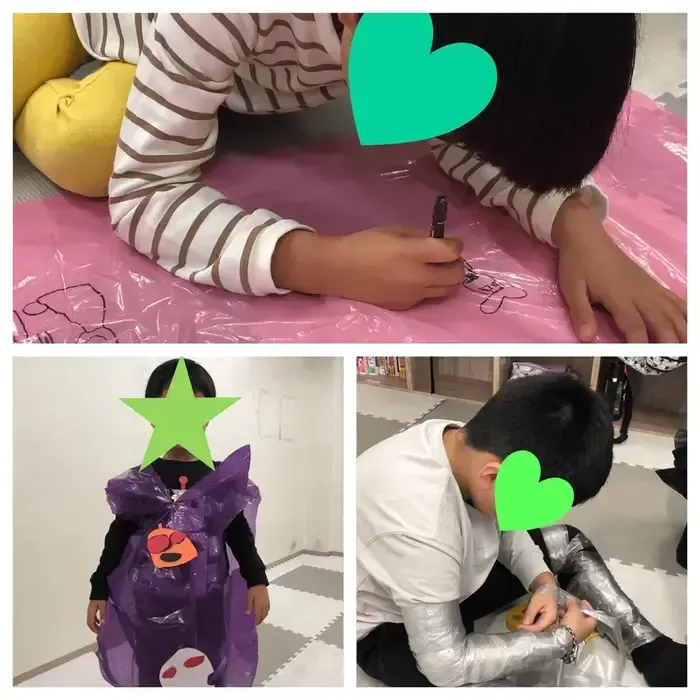 画用紙で飾りを作ったりして衣装の出来上がり♪