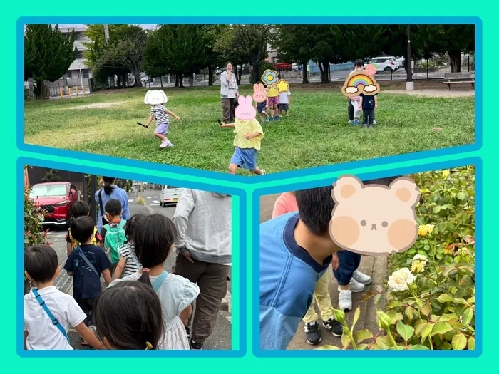 午前クラスでは全体のペースを合わせて歩いたり、公園内のバラを鑑賞したりしました😊