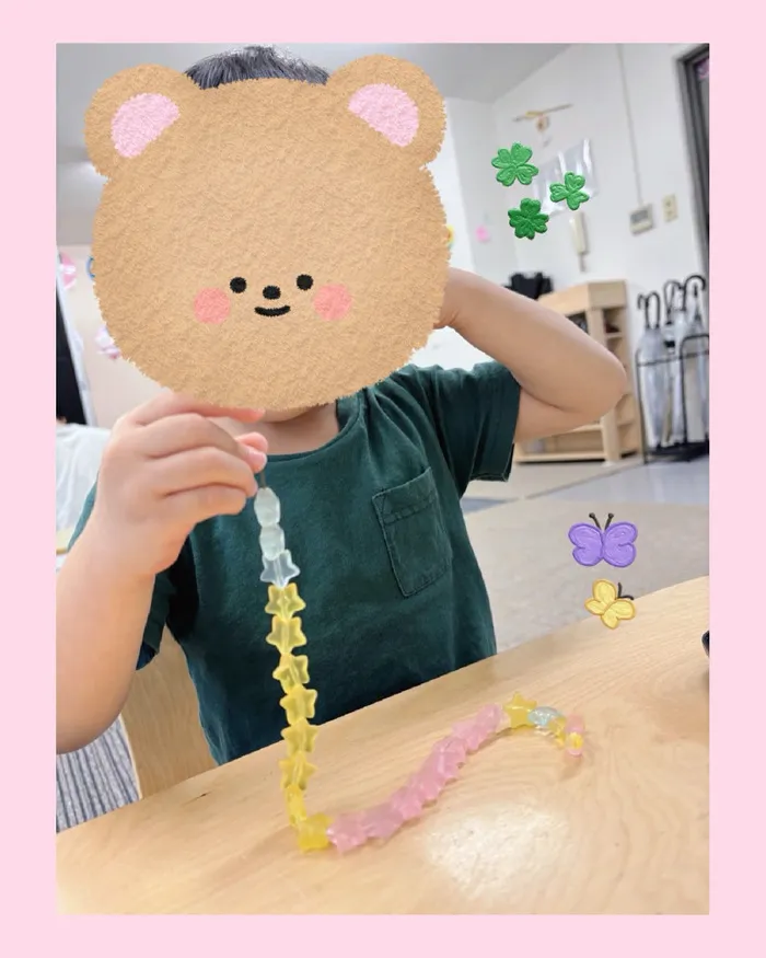紐を掴んで穴に通すという繰り返しの動作で、指先の感覚の発達を促していきます🌷