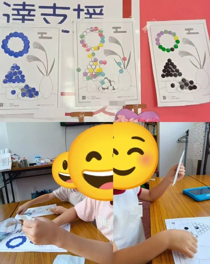 皆枠線からはみ出さないように、指先の感覚をうまく使って貼っていました♪