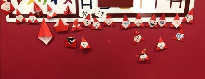 先生が折り方を説明し、説明を聞きながら一人ひとりサンタを折りました💪✨
