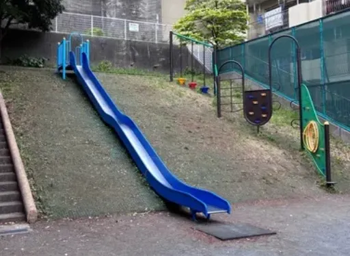 同じく傾斜に作られているボルダリング式の遊具では、ちょっとしたアスレチック気分を味わえました🧗♀️