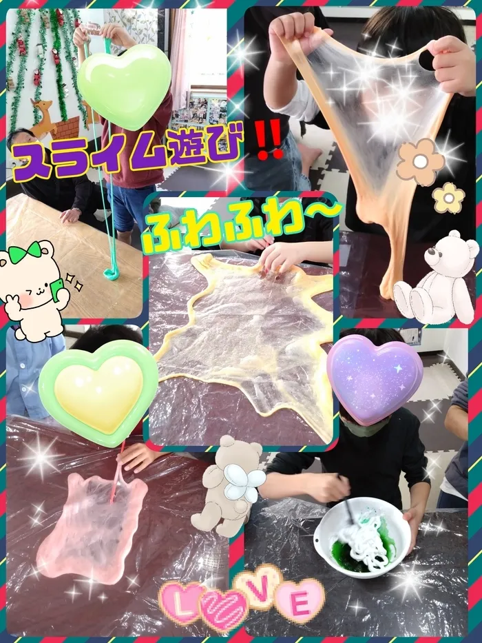 今日は祝日なので、子ども達の大人気なスライム作りを企画しました😉💕