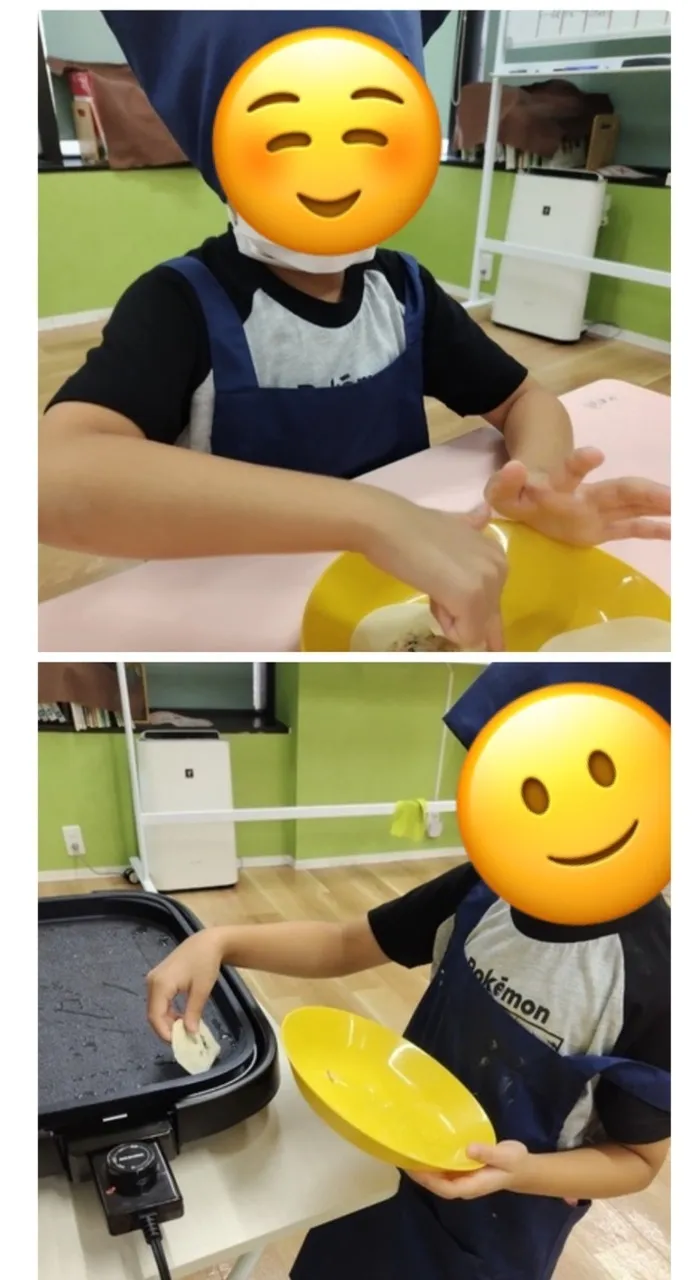 破けないように包んで、熱いプレートに触れないように焼くよ~