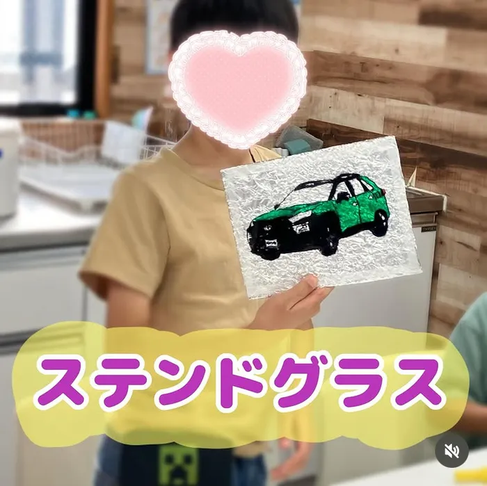 クリアファイルに絵を描いてアルミホイルの台に貼り付けるとキラキラ光るステンドグラス風アート🎨✨