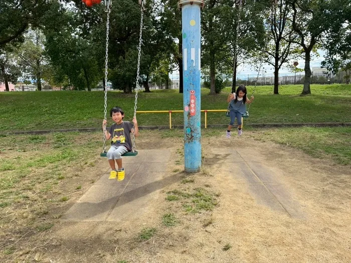 大きな滑り台やブランコなどの遊具で遊んだり砂場でお山を作ったり穴を掘ったりストレッチ遊具で体をのばしたり子ども達のしたい遊びをたくさんすることができました😊