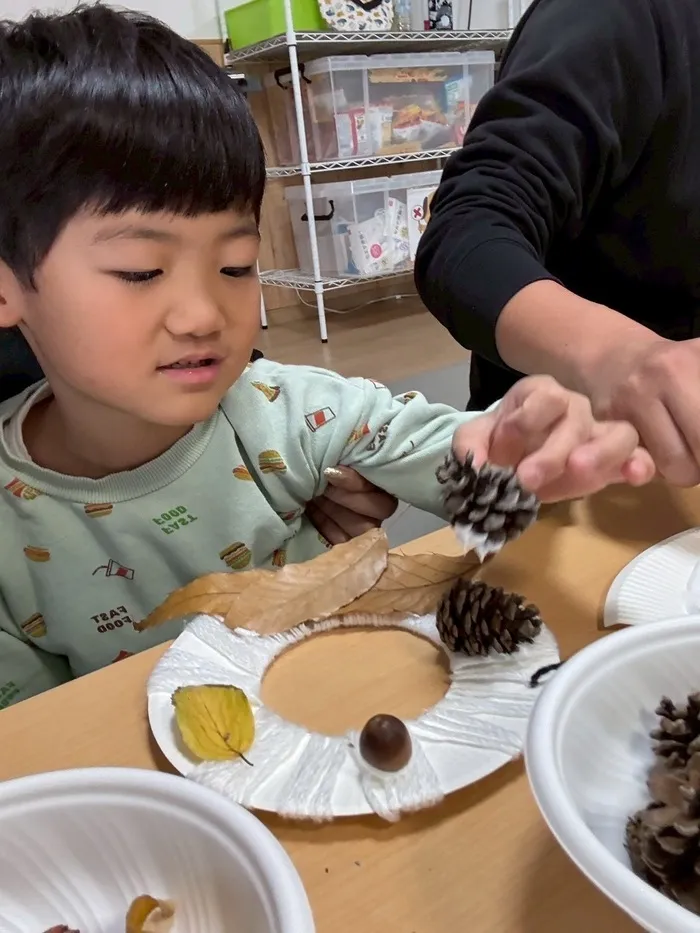 久宝寺公園で葉っぱを拾って秋の落ち葉リースを作りました😆