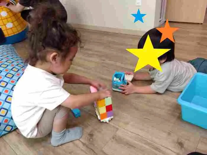 たくさんのブロックを積み重ねて大きな車を作ったり、