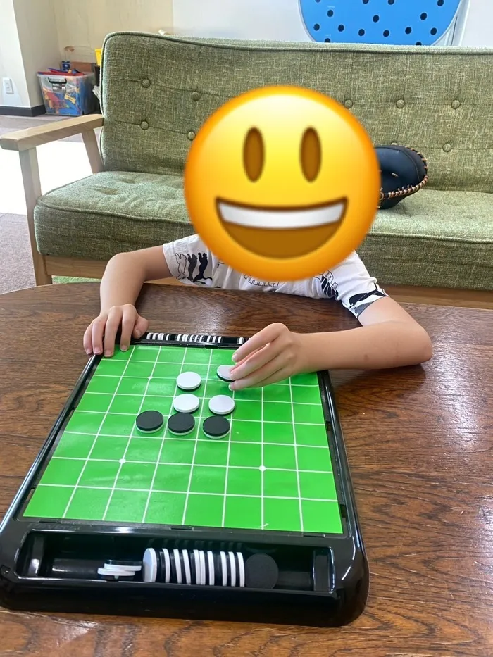 特に当事業所を利用しているお友達はオセロをやったことがない子が多いです。また、やったことがあっても「勝ちたい」気持ちが強くズルをしてしまう子も多いです。👀