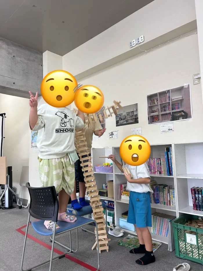 「驚いた顔してる」「傾いてる瞬間だ!」「つみきが浮いてる」と各々楽しそうに言ったり、自分のびっくり顔を見てひとしきり笑い、じゃあまた作ろうと意気込んでつみきに戻っていきました💪✨