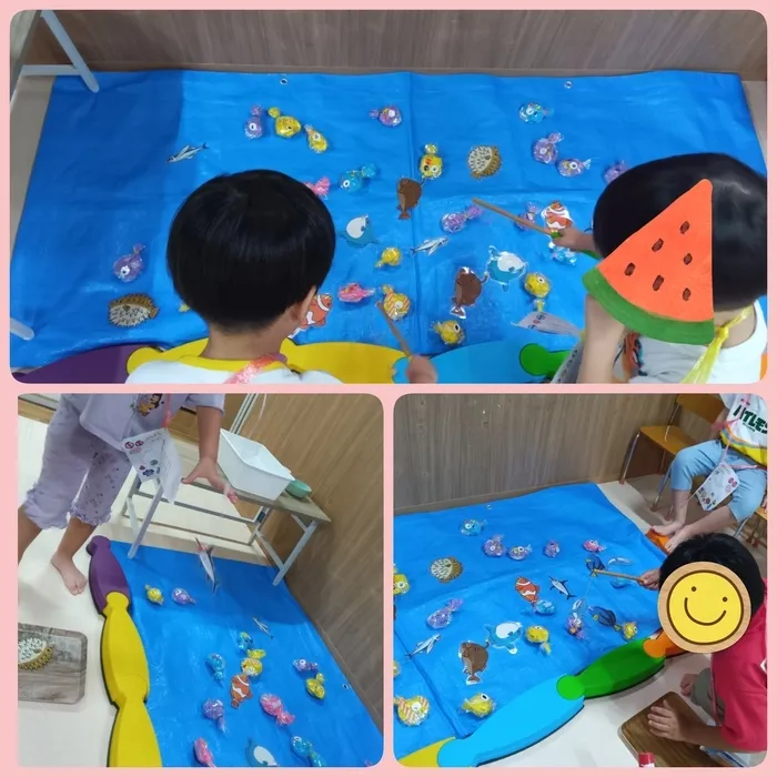 今回の魚釣りは、みんなに作って貰ったものに加えてイラストのお魚も用意しましたよ🍀