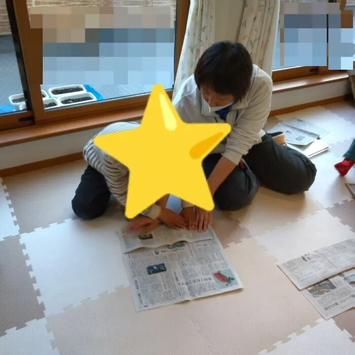 そこで今日のトゥインクル広場では防災講座の一環で、新聞紙でのスリッパを作りました😮
