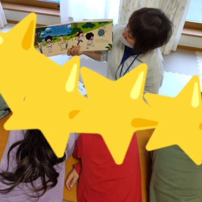 職員が絵本を読み始めるとみんなお話の世界に入り込んでいました😊
