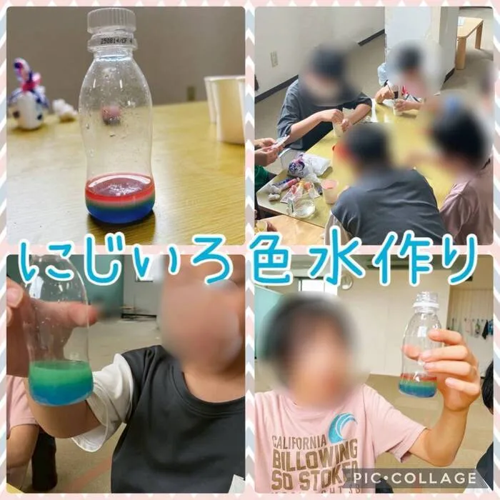 意外と入れ方のコツが難しく、途中で色が混ざってしまい失敗することも(職員も失敗しました笑)😣それもまた実験の醍醐味で、「もう1回やる!」と何度も挑戦し、見事に綺麗な層ができた子がいました!!🌈✨
