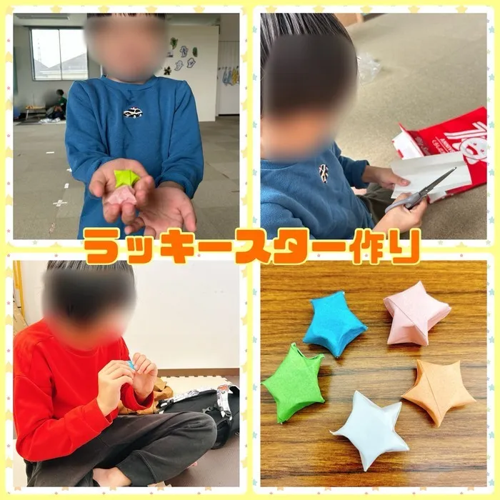 細かい作業が苦手な子は少し苦戦していましたが、スタッフが補助しながら取り組み、可愛らしいラッキースターが完成しました⭐️