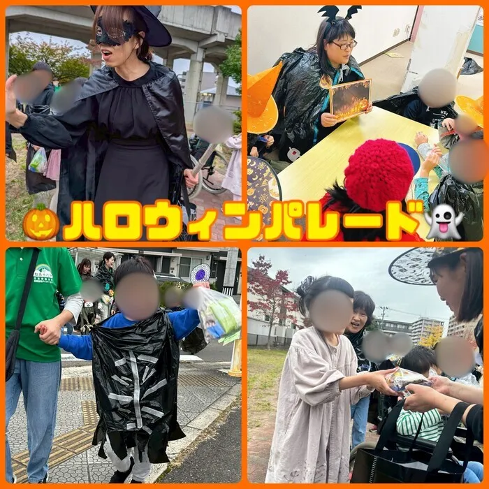 公園では、魔女に仮装した職員に「トリックアトリート!お菓子くれなきゃイタズラしちゃうぞ!」と、最高の笑顔で合言葉を伝え、見事にお菓子をゲット🍬🍫
