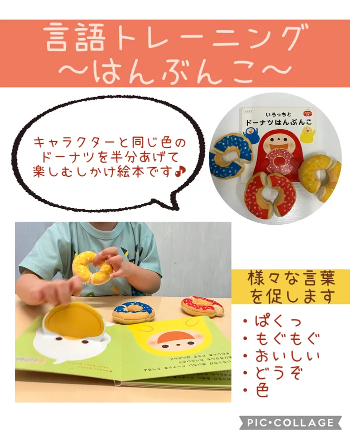 今回は『いろっちとドーナツはんぶんこ』の絵本を使ったセラピーの様子をご紹介です。