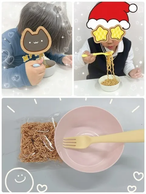 最近のおやつ時間では、子どもたちに大人気の“ミニラーメン”が登場しています🍜