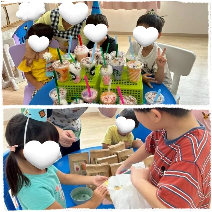 9月のプログラムでお店屋さんに出す商品(フラペチーノ🥤・ペーパーマグカップ☕️・サンドイッチ🥪)を作り、放課後デイサービスのお兄さん、お姉さんにお客さんとして買い物に来てもらいました☺️