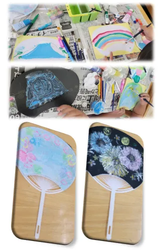 絵具やスタンプを使ってうちわづくりを行いました🌟