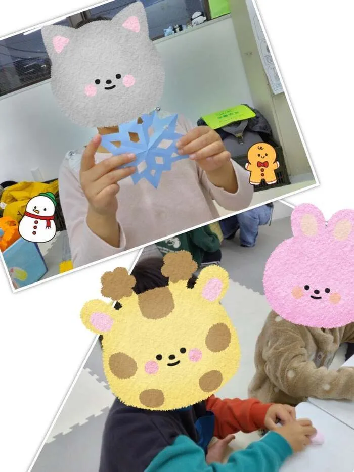 折り紙で切り絵に挑戦し、オリジナルのオーナメントを作りました。