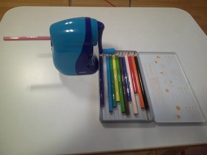 たまに逆に回して鉛筆が飛ぶ様子に喜ぶお子様も(笑)