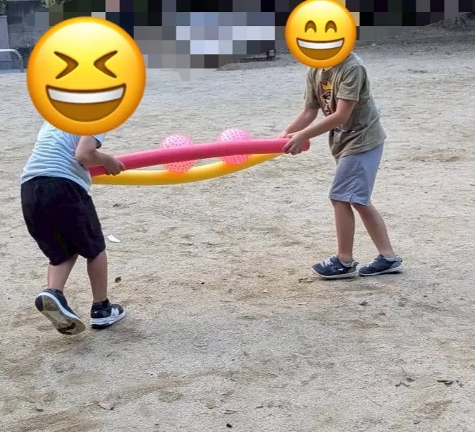 お友だちと力を合わせてボール運びをしたり、ハードルを飛び越えたりと、