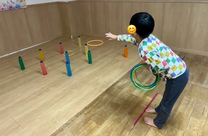 最初は難しい様子でしたが、的に輪っかが入ると大喜びして楽しんでいました✨